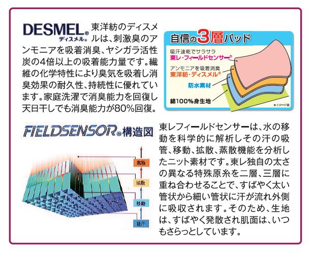 吸水パッドには東レのフィールドセンサー(R)も使用。